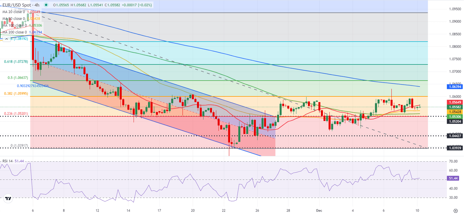 - EUR/USD moves sideways in a tight range below 1.0600 on Tuesday.
