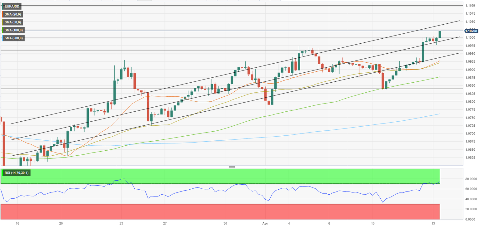 Following a relatively quiet Asian session, EUR/USD has regathered bullish momentum and climbed to its highest level since early February above 1.1000. The pair remains on track to renew 2023 highs above 1.1030 but the technical outlook suggests that there could be a downward correction before the next leg higher.