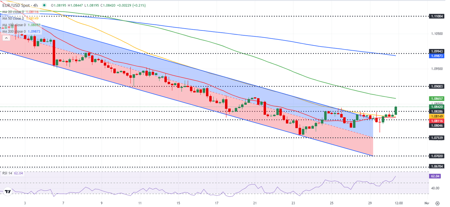 Regional Consumer Price Index (CPI) figures and third-quarter Gross Domestic Product (GDP) data from Germany will be watched closely by market participants. Investors expect Germany's GDP to contract at an annualized rate of 0.3% in the third quarter. A worse-than-expected GDP print, combined with soft regional inflation figures from Germany, could weigh on the Euro with the immediate reaction.