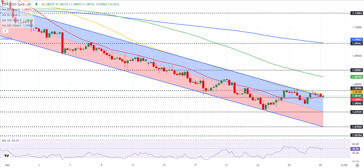 EUR/USD moves sideways slightly above 1.0800 early Tuesday after managing to post small daily gains on Monday. The pair's technical outlook highlights a neutral stance in the near term.