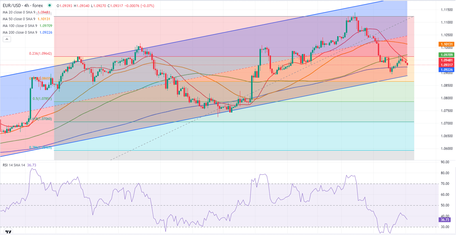 On the upside, EUR/USD could face resistance at 1.0970 (100-period SMA), 1.1000 (psychological level, static level) and 1.1050 (mid-point of the ascending channel).