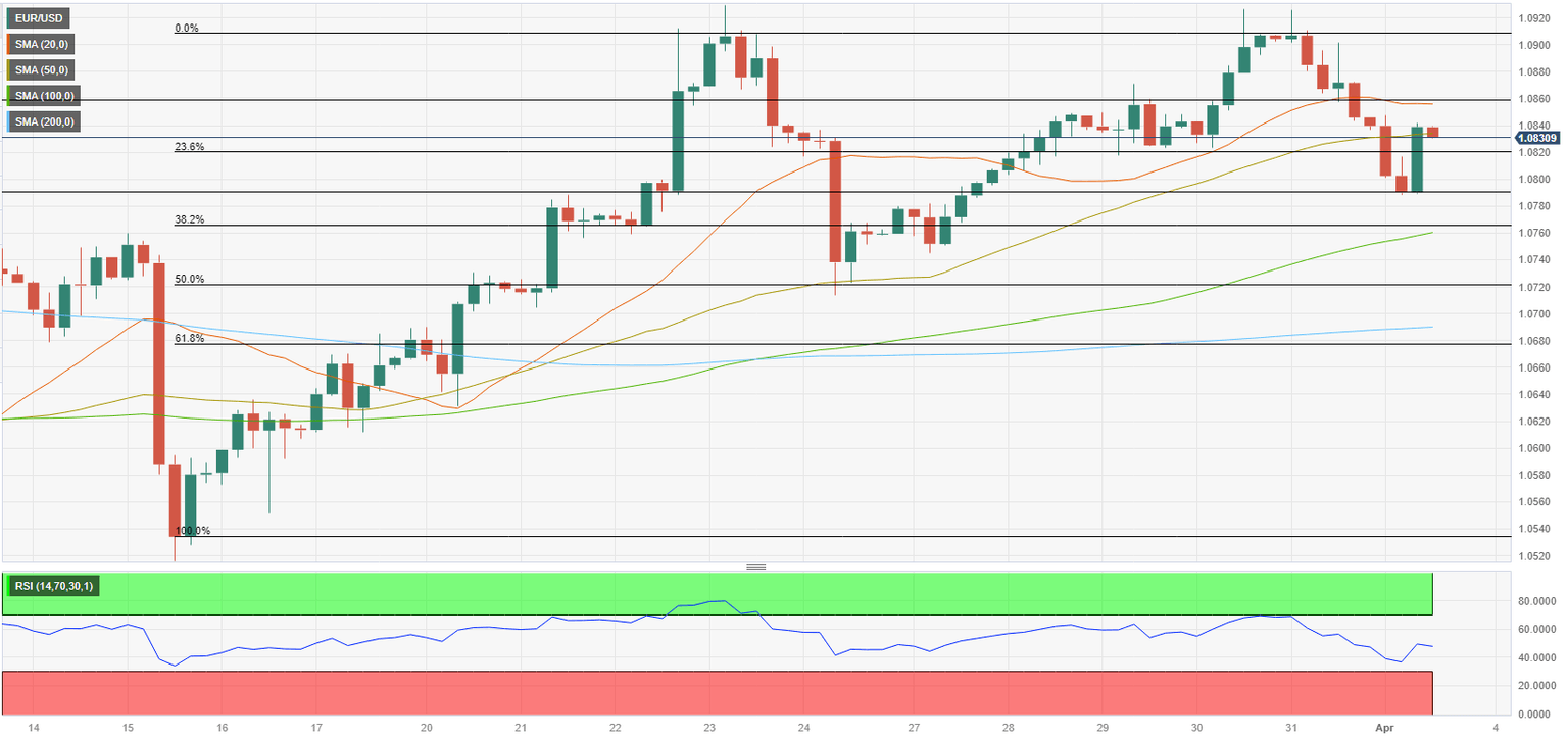 - EUR/USD has staged a rebound after having declined below 1.0800.