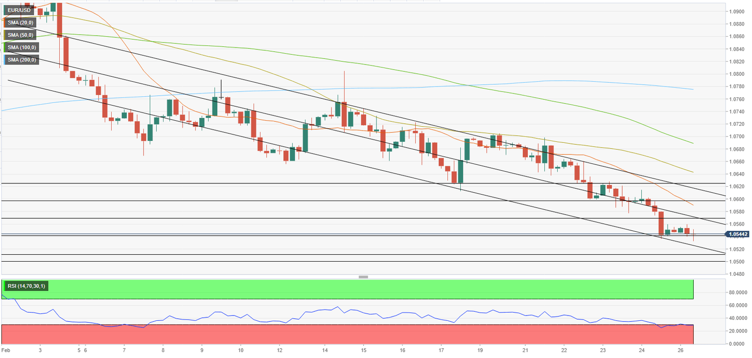 EUR/USD has stabilized near 1.0550 after having touched its lowest level since early January at 1.0532 in the European morning. The pair's technical outlook shows that the bearish bias stays intact in the short term. In case safe-haven flows dominate the markets on the first trading day of the week, the pair could challenge 2023 lows below 1.0500.