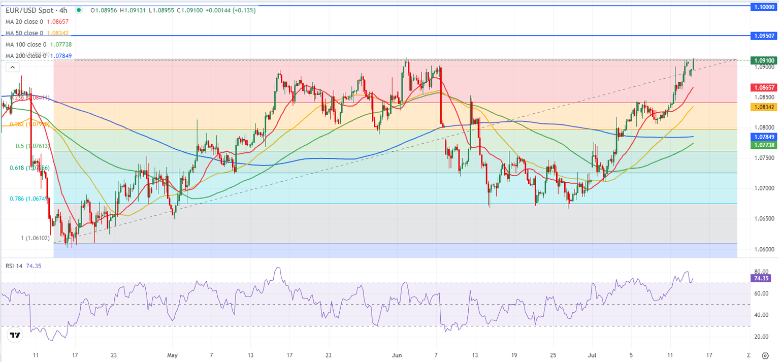 EUR/USD trades above 1.0900 after opening below this level. Once the pair confirms that level as support, it could target 1.0950 (static level) before 1.1000 (psychological level, static level). On the downside, 1.0850 (former resistance, static level) aligns as first support ahead of 1.0800 where the 100-day and the 200-day Simple Moving Averages (SMA) are located.