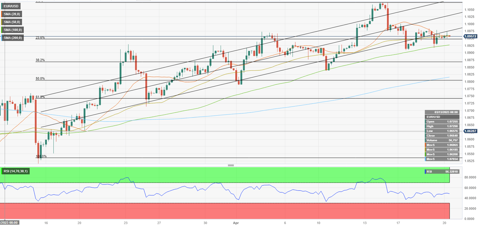 On the downside, 1.0950 (Fibonacci 23.6% retracement of the latest uptrend) aligns as interim support before 1.0925 (100-period SMA). A four-hour close below the latter could attract sellers and open the door for an extended slide toward 1.0900 (psychological level) and 1.0870 (Fibonacci 38.2% retracement).