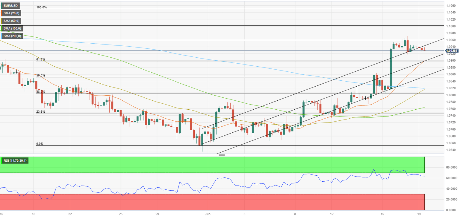 EUR/USD fluctuates in a narrow channel above 1.0900 early Monday following last week's impressive upsurge. There won't be any high-tier data releases that could impact the pair's performance, leaving comments from European Central Bank (ECB) officials as the only potential catalyst. In the second half of the day, trading action is likely to remain subdued with the stock and bond markets in the US remaining closed in observance of the Juneteenth holiday.