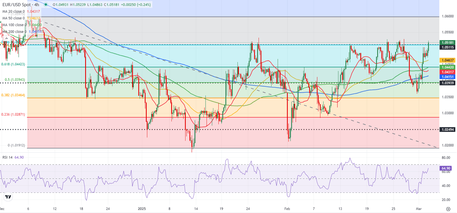 In the meantime, US President Donald Trump's 25% tariffs on Canadian and Mexican imports, as well as the additional 10% on Chinese goods, went into effect early Tuesday. In response, Canada and China announced retaliatory measures, further feeding into concerns over an economic downturn in the US. As a result, the USD came under pressure, Wall Street's main indexes declined sharply and the benchmark 10-year US Treasury bond yield dropped to its weakest level since early December below 4.2%.