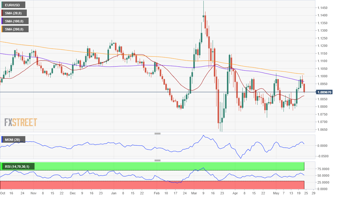 The FXStreet Forecast Poll shows that disappointed bulls are willing to give up, as most polled experts expect the pair to fall in the upcoming weeks. Bears represent 64% in the weekly perspective and decrease to 50% in the monthly one. However, bulls in this last time frame represent just 22%. On Average, the pair is seen holding between familiar levels, unable to run past the 1.1000 critical figure but holding above the mentioned yearly low.