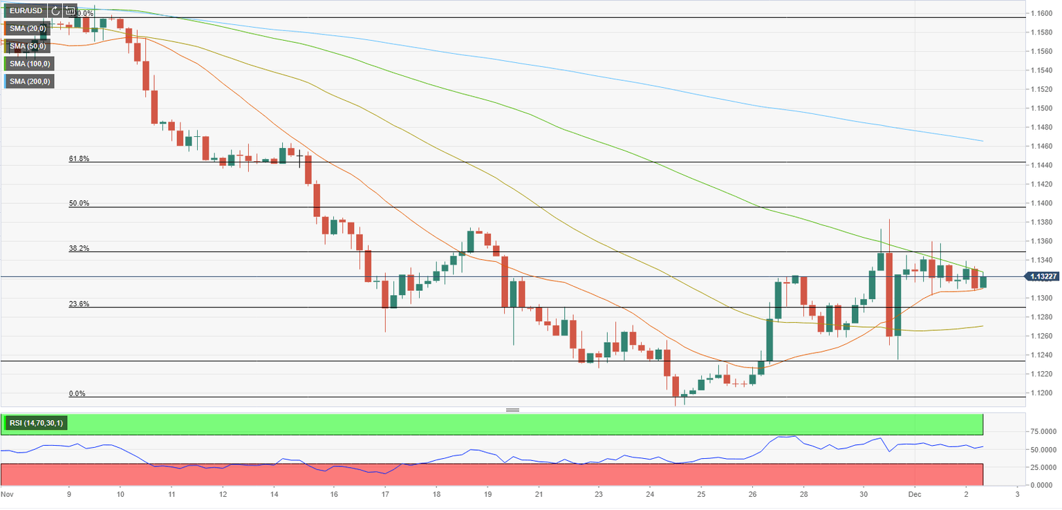 1.3330 (100-period SMA) aligns as first resistance before 1.1360 (Fibonacci 38.2% retracement of November's downtrend) and 1.1400 (Fibonacci 50% retracement).