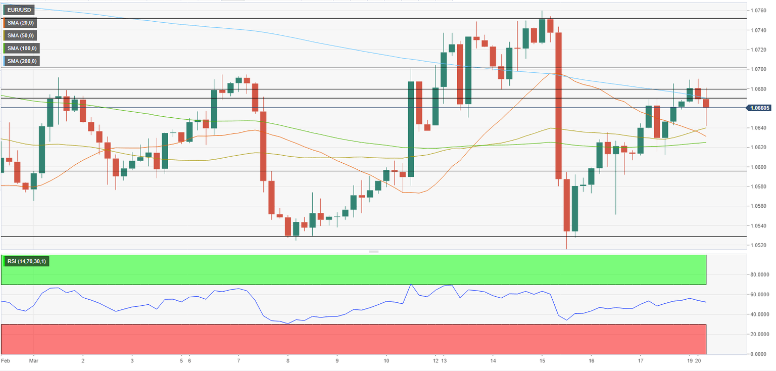 With the latest pullback, the Relative Strength Index (RSI) indicator on the four-hour chart declined toward 50, pointing to a loss of bullish momentum in the near term. On the upside, 1.0670 (200-period Simple Moving Average(SMA)) aligns as initial resistance ahead of 1.0700 (psychological level, static level). If the pair rises above that latter resistance and starts using it as support, it could target 1.0750 (static level).