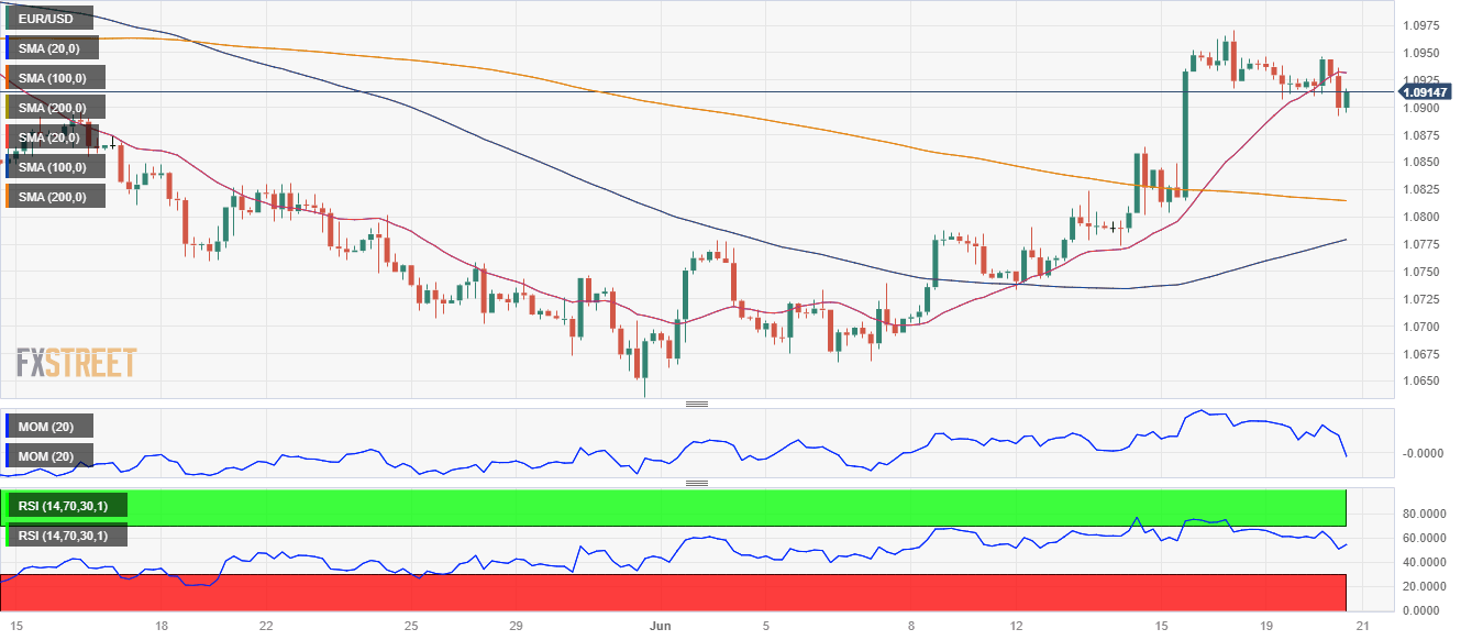 - EUR/USD buyers battling to maintain it above the 1.0900 threshold.