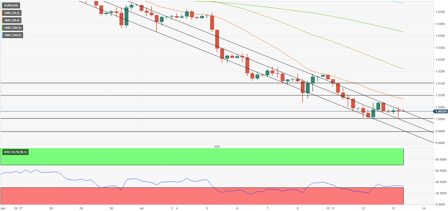 Following a consolidation phase near 1.0050 during the Asian trading hours, EUR/USD has turned south on Wednesday with European stocks opening deep in negative territory. The pair stays within a touching distance of parity and the bearish pressure could ramp up with a drop below that critical level.