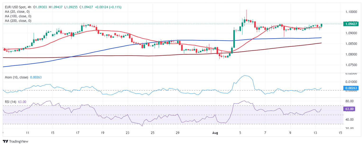Finally, the US Producer Price Index (PPI) rose 0.1% MoM in July as expected, while the annual increase was 2.2%, below the anticipated 2.3% and the previous 2.7%. Core annual inflation at wholesale levels eased from 3% in June to 2.4%. The encouraging figures put some pressure on the USD, with EUR/USD hovering around 1.0940 ahead of Wall Street’s opening.