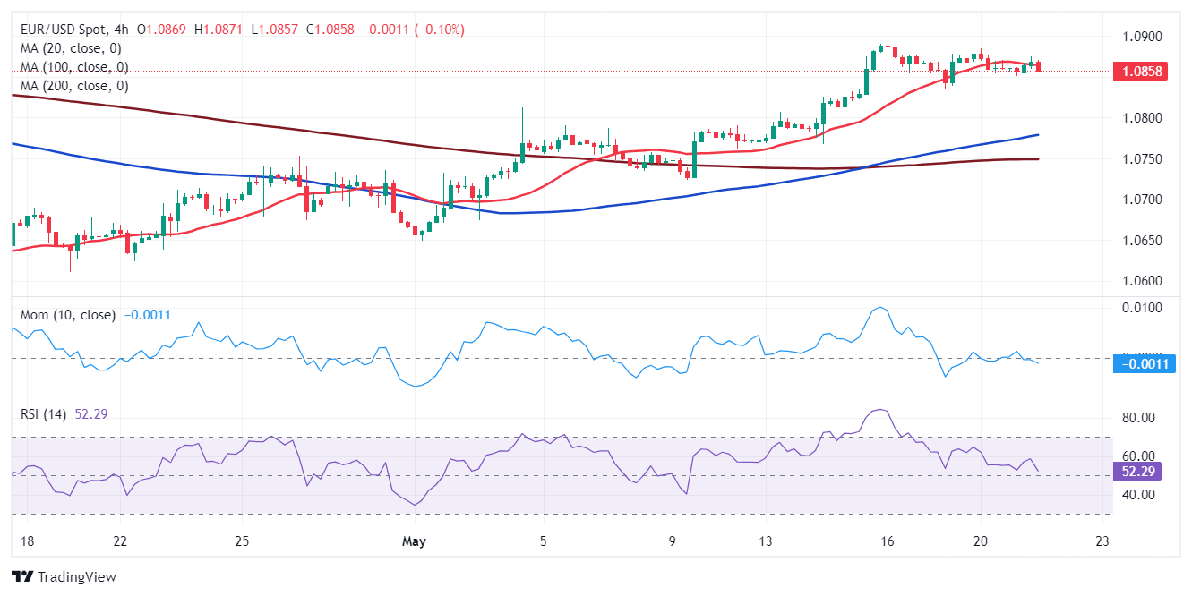The EUR/USD pair keeps trading lifeless around the 1.0860 level on Tuesday, confined to a tight 25 pips intraday range. The market mood soured after Wall Street’s mixed close in the first trading day of the week, with Asian and European indexes losing ground and putting mild pressure on their American counterparts ahead of the opening.