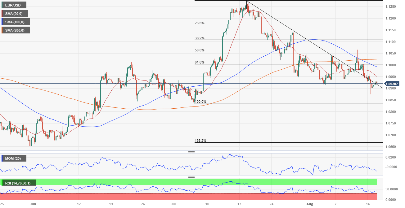 - EUR/USD maintains its bearish tone, aiming for a definite break of 1.0900.