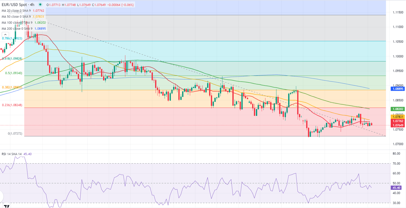 - EUR/USD struggles to find direction and continues to trade below 1.0800.