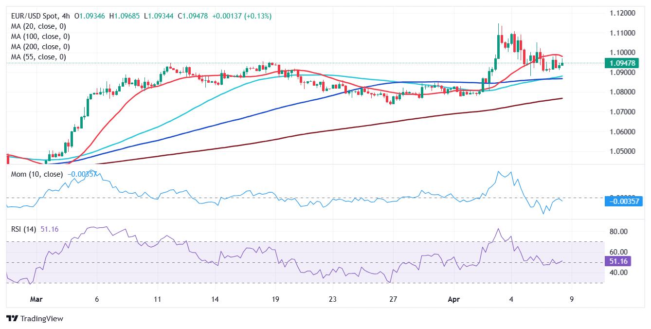 - EUR/USD consolidates around 1.0950 as markets finish digesting tariffs’ shock