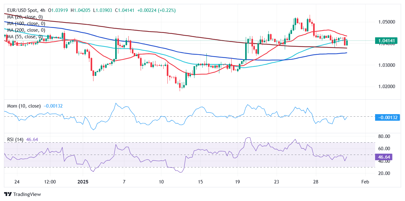 - EUR/USD remains stuck around 1.0400, with no clear directional clues in the near term.