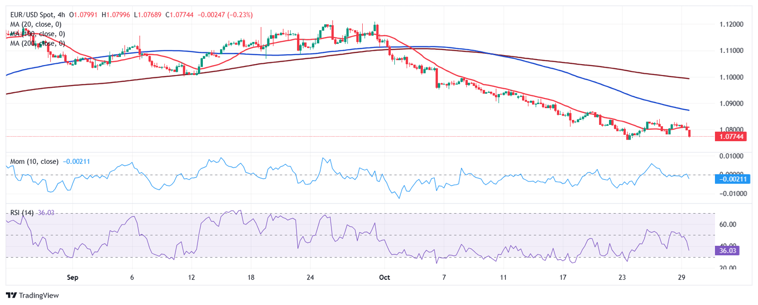 - EUR/USD accelerates its slide after failing to reconquer the 1.0800 threshold.