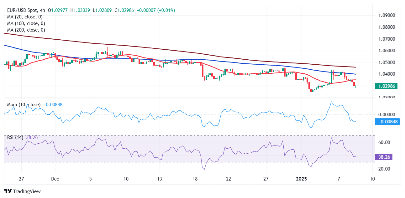 - EUR/USD struggles around 1.0300 and aims to extend its slide in the near term.