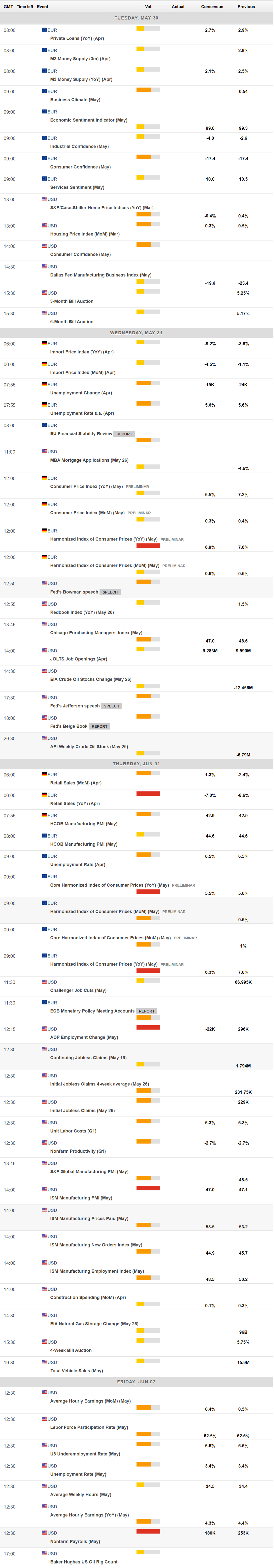 European data, on the other hand, reflect a more fragile economic stance. The German GDP was downwardly revised to -0.3% QoQ, following a preliminary estimate of 0%. Annualized growth came in at -0.5%, worse than the -0.1% previously calculated. Other German data released these days also weighed on the Euro, as the May IFO survey on Business Climate contracted by more than anticipated, to 91.7, while the June Gfk Consumer Confidence Survey printed at -24.2, worse than the -24 expected.