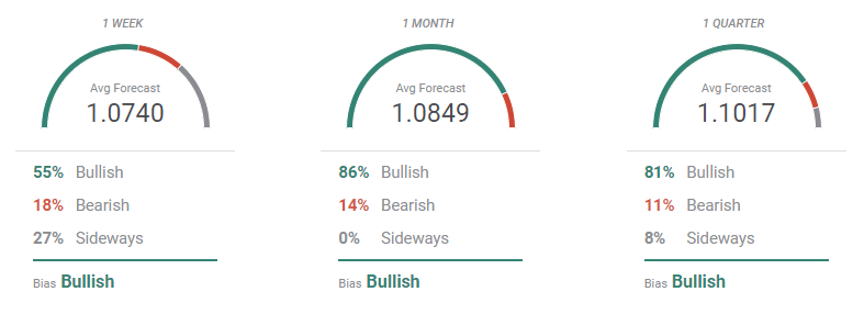 The FXStreet Forecast Poll suggests the Greenback will lose the battle, as EUR/USD is seen bullish in the three time-frame under study. Bulls stand at 55% of the polled experts on a weekly basis but jump to 86% in the monthly view and 81% in the quarterly perspective. On average, the pair is seen back above 1.1000 by the end of the period.