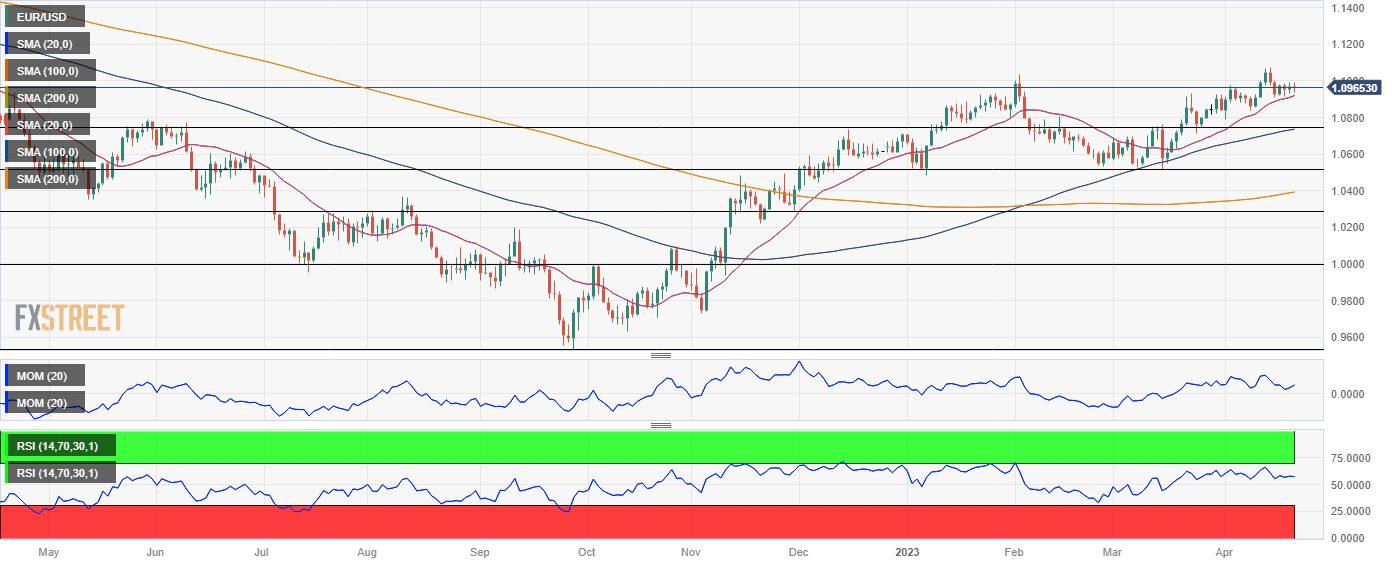 Meanwhile, the latest released macroeconomic figures confirmed the fears triggered last week by softer-than-anticipated data. Economic Sentiment improved by less than anticipated in April, according to the ZEW survey. On a positive note, the Producer Price Price Index (PPI) in the country rose at a slower-than-anticipated pace in March, up by 7.5% YoY. At the same time, the EU confirmed the March Harmonized Index of Consumer Prices (HICP) rose at an annualized pace of 6.9%.
