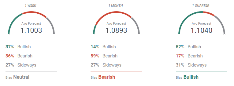 The FXStreet Forecast Poll suggest EUR/USD will extend its consolidative phase next week. The pair is seen at around 1.1000, with an equal number or bullish and bearish bets. Bears dominate the monthly perspective, as 59% of the polled experts believe the pair will trade at lower levels. On average, is seen at 1.0893. Still, the decline seems corrective and in the quarterly view, bulls re-take control, represented by 52% of experts and with an average target of 1.1040.