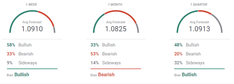 According to the FXStreet Forecast Poll, EUR/USD will extend its bullish route next week, as 58% of the polled experts are looking for higher highs, with an average target of 1.0910. Buying interest eases as time goes by, as, in the monthly perspective, bears stand at 53%, while bulls decrease to 33%. Still, the pair is seen holding above 1.0800. Finally, the quarterly view shows that most experts bet for an advance, with those looking for lower levels down to just 20%.