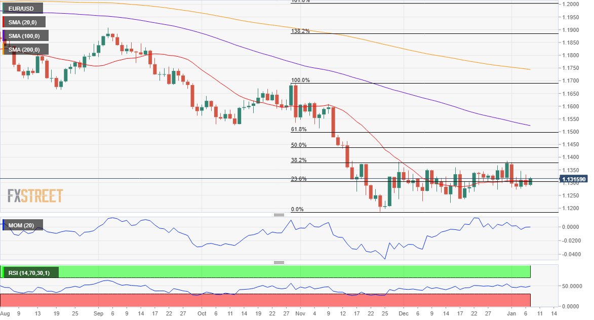 - EUR/USD keeps hovering around 1.1300, but buyers may soon give up.