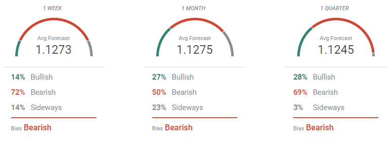 The FXStreet Forecast Poll hints at a bearish breakout, as bears are in control in the three time-frame under study. On average, the pair is seen holding above 1.1200, but the Overview chart shows that most targets accumulate well below the current level, while the moving averages accelerated their sumps.