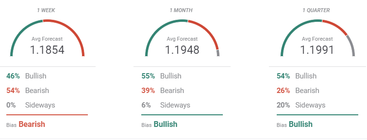 According to the FXStreet Forecast Poll, bears retain control of the pair, with 54% of the polled experts betting for lower lows. On average, the pair is seen at 1.1854, pretty much unchanged, as speculative interest still needs to finish digesting the latest Fed’s announcement. Bulls account for more than 50% in the monthly and quarterly views, with EUR/USD expected to recover above the 1.1900 area on average.