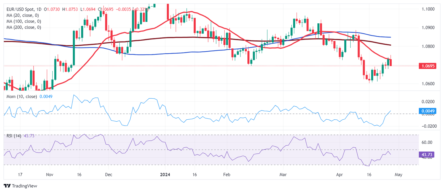 The EUR/USD pair temporarily reconquered the 1.0700 threshold this week, settling at around that round level. The US Dollar lost its appeal following discouraging United States (US) macroeconomic data indicating tepid growth and persistent inflationary pressures. The data became more relevant ahead of the Federal Reserve (Fed) monetary policy decision next week, exacerbated by the blackout period that prevents Fed officials from making comments on the matter ten days before the event.