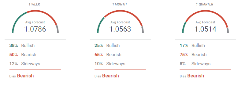 According to the FXStreet Forecast Poll, the EUR/USD pair has a limited bullish scope. In the weekly perspective, the pair is seen confined to the 1.0600/1.0900 region, with bears accounting for 50% of the polled experts. The number of those betting for lower levels increases in the monthly view to 65%, while it further raises to 75% in the three-month view, with the pair seen on average at 1.0514.