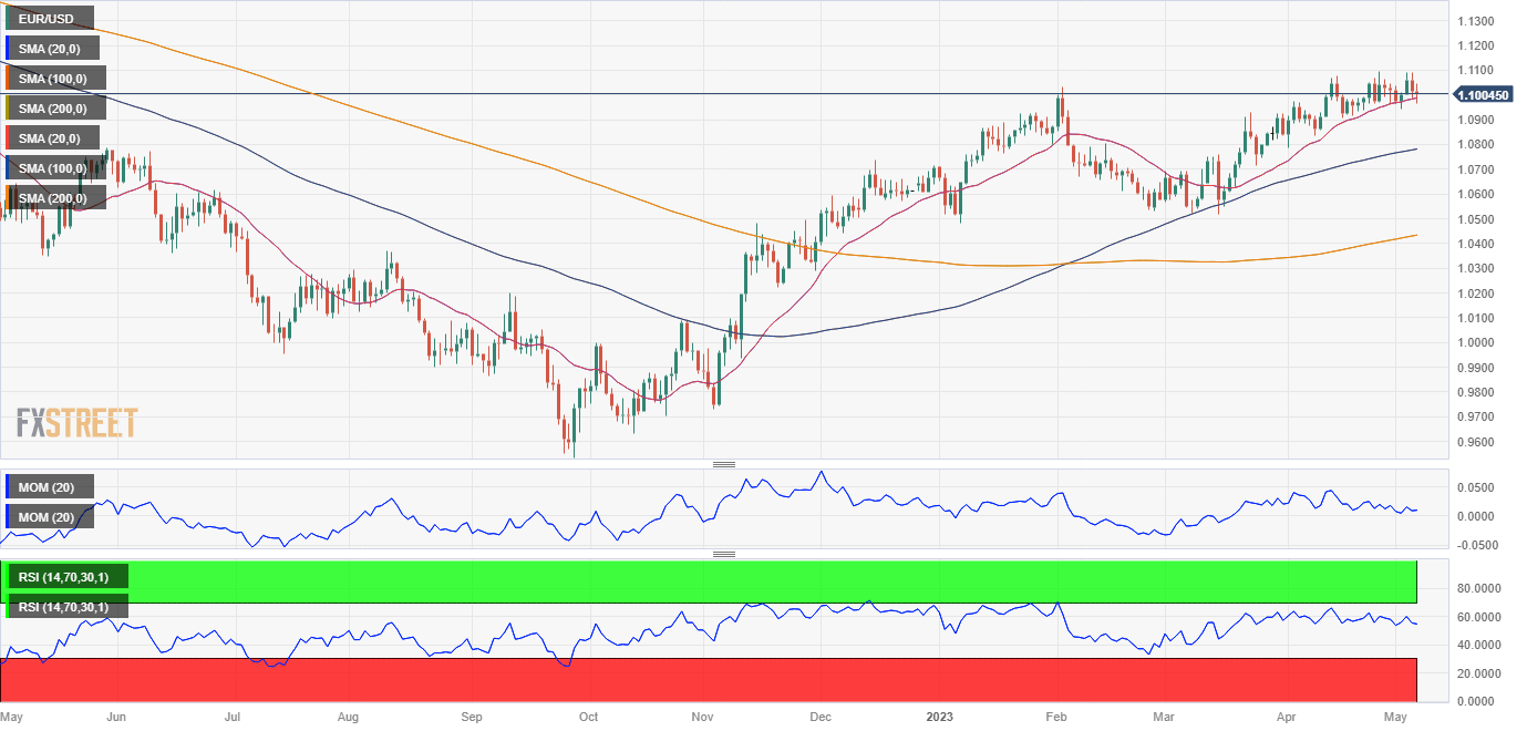 Finally, on Friday, the US published the April Nonfarm Payrolls report, further boosting the Greenback and pushing EUR/USD below 1.1000. The country added 253K new job positions, much better than the 179K expected. Additionally, the Unemployment Rate contracted to 3.4%, while the Labor Force Participation Rate increased to 62.6%. Finally, Average Hourly Earnings were up 0.5% MoM and 4.4% YoY, above market expectations.