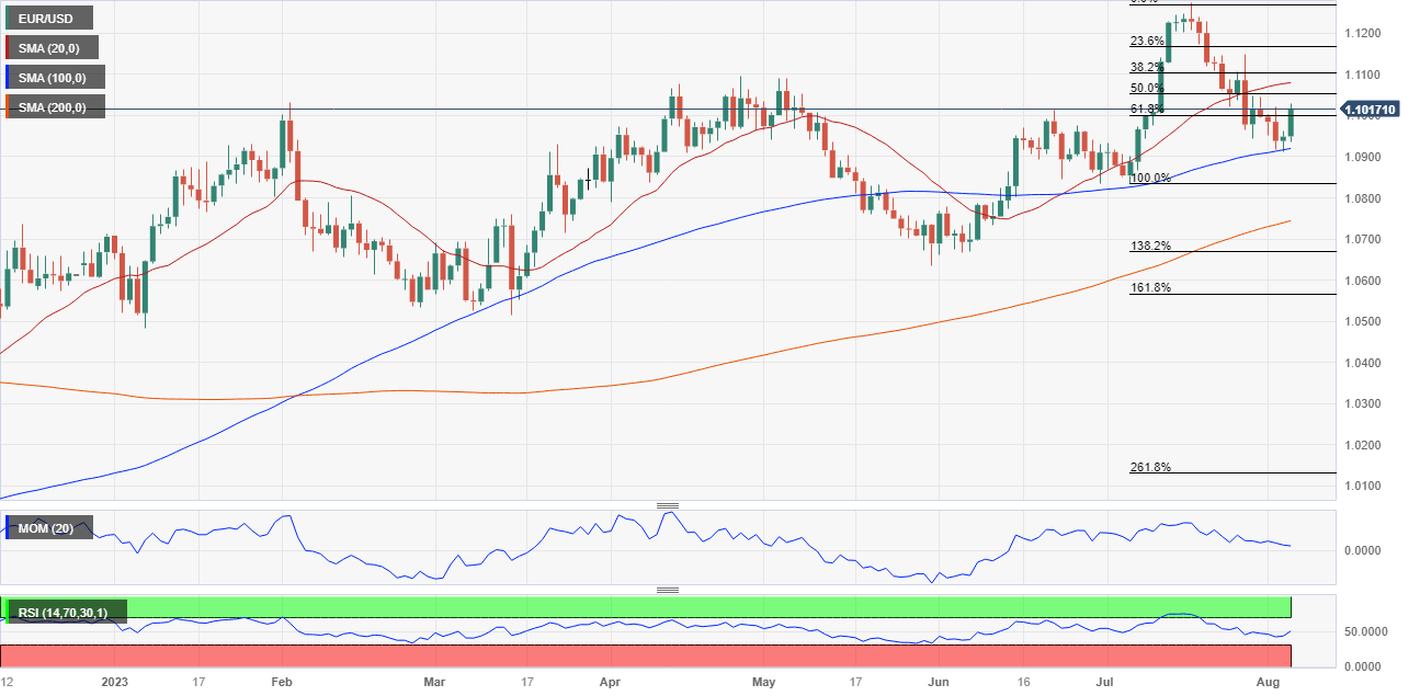 An immediate resistance level comes at 1.1050, while a more relevant one is located at 1.1104, the 38.2% retracement of the aforementioned rally. A recovery beyond the latter should put EUR/USD back on the bullish track. On the contrary, a slide through 1.1000 could see the pair falling back towards the 1.0910 area en route to the 1.0830 price zone.