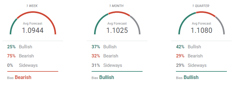 The FXStreet Forecast Poll shows that bears could retain control near term, as 75% of the polled experts are bearish in the weekly perspective, with an average target of 1.0944. Bulls, on the other hand, dominate the monthly and quarterly views, although barely above those betting for a continued decline. Buyers are at 37% in the 1-month view and at 42% in the three-month one. However, the average targets fall in the 1.10 price zone, suggesting bulls remain unconvinced.