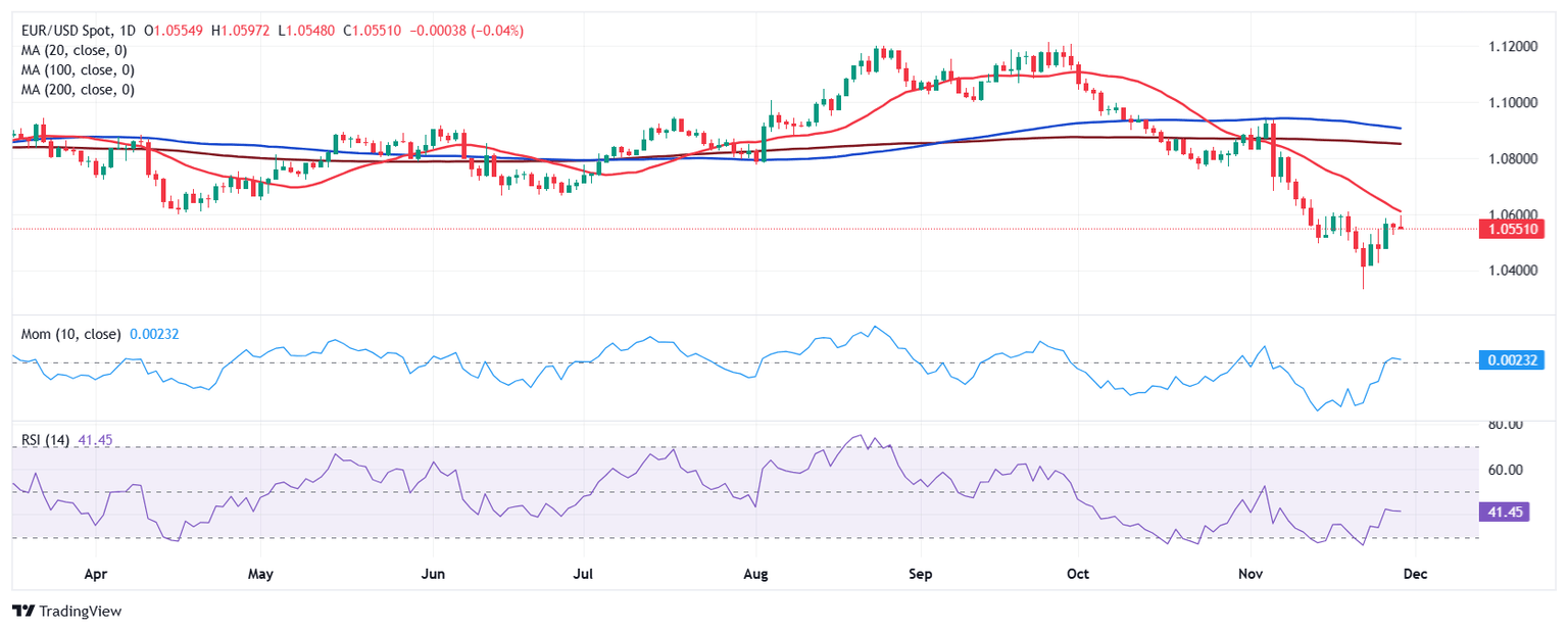 The EUR/USD pair ended a three-week losing streak, recovering towards 1.0600 before finally finding sellers. The US Dollar (USD) gapped lower at the weekly opening after reaching fresh 2024 highs against its European rival, with EUR/USD bottoming at 1.0332 on November 22.