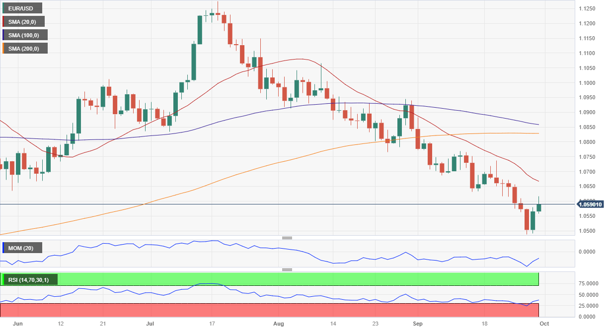 The EUR/USD plummeted to 1.0487 on Wednesday, its lowest since early March, as investors continued to seek refuge in the US Dollar. Financial markets were in risk-averse mode following central banks’ monetary policy decisions from earlier this month, as despite holding fire, most policymakers reaffirmed the inflation risks remain high and rates should stay higher for longer to maintain price pressures under control.