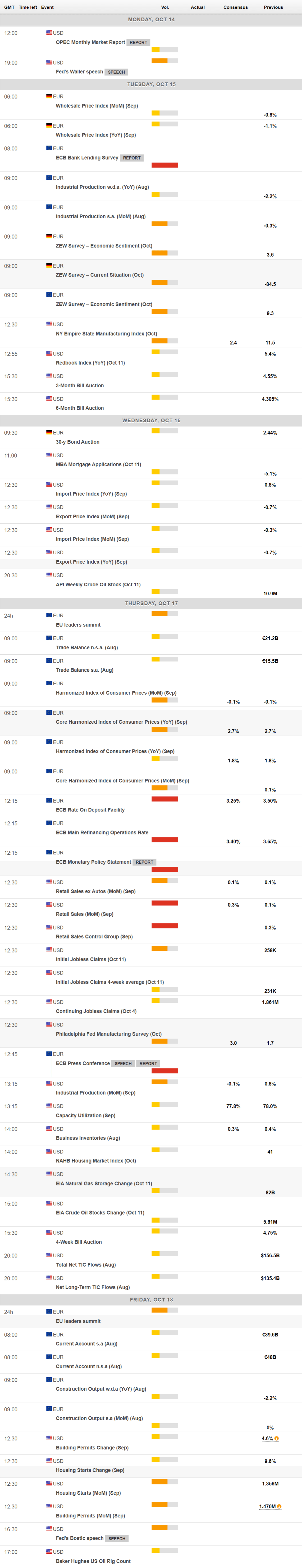 In the Eurozone, Retail Sales increased a modest 0.8% in August, while Sentix Investor Confidence improved to -13.8 in October from -15.4 in the previous month.