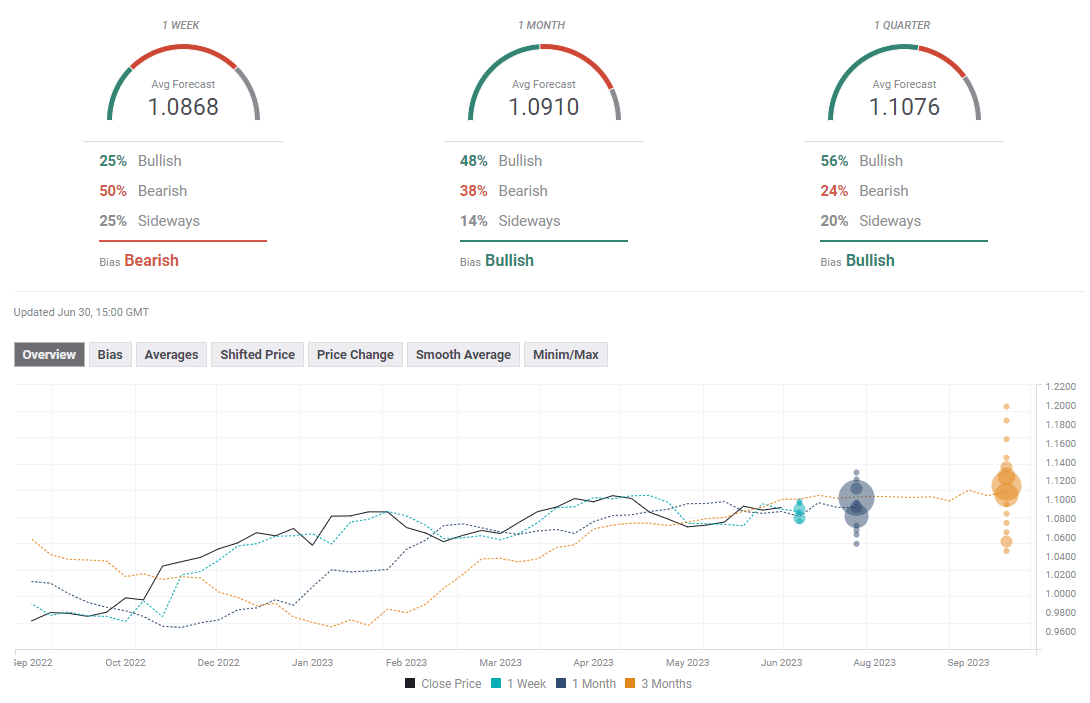 The FXStreet Forecast Poll shows that market players expect the EUR/USD to advance over the next few months. In the short term, they have a neutral perspective, with the average forecast around the current level. On a quarterly perspective, they see the pair moving above 1.1000, with an average forecast of 1.1076. However, many experts see the EUR/USD rising above 1.1400.