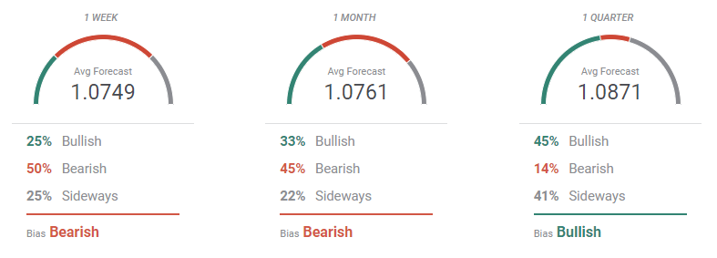 The FXStreet Forecast Poll shows that EUR/USD will likely remain around the current level, although most polled experts are bearish in the weekly and monthly perspectives. In the quarterly view, however, bulls dominate the scene standing at 45%. On average, the target has been lifted to 1.0871.
