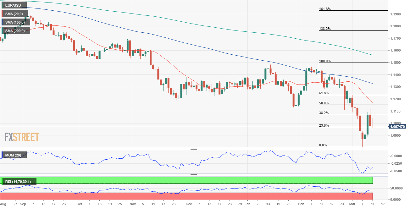 Among other relevant data released in the last few days, the EU confirmed the Q4 Gross Domestic Product at 0.3%, while German inflation soared to 7.6% YoY in February. Finally, the preliminary estimate of the US March Michigan Consumer Sentiment Index printed at 59.7, much worse than anticipated.