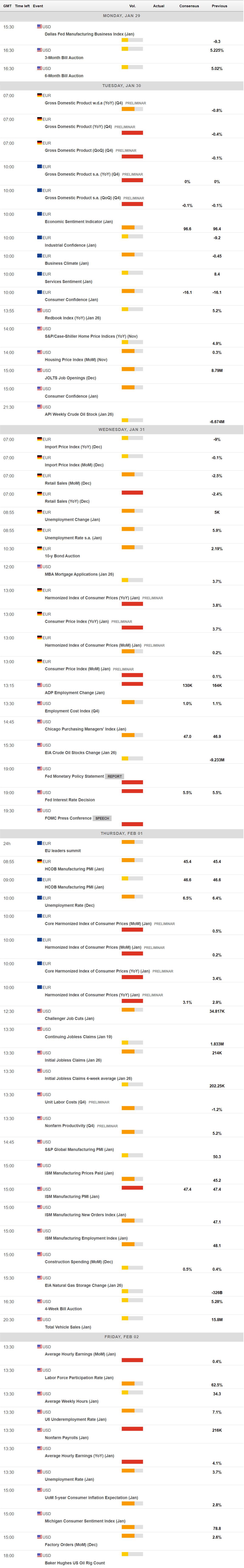 The focus now shifts to the Federal Reserve (Fed). The US central bank will announce its decision on monetary policy next Wednesday, with financial markets hoping for additional clarity on rate cuts. The Federal Open Market Committee (FOMC) will most likely opt to maintain key interest rates at current levels at the conclusion of its upcoming meeting on January 31.
