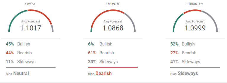 According to the FXStreet Forecast Poll, EUR/USD could have a hard time extending gains beyond the current area. On average, polled experts see the pair holding a handful of pips above the 1.1000 threshold in the weekly perspective, but below it in the longer views. 61% of them expect the pair to drop in a one-month view, although such a figure decreases to 27% in the quarterly perspective when the pair is seen returning to the current price zone.