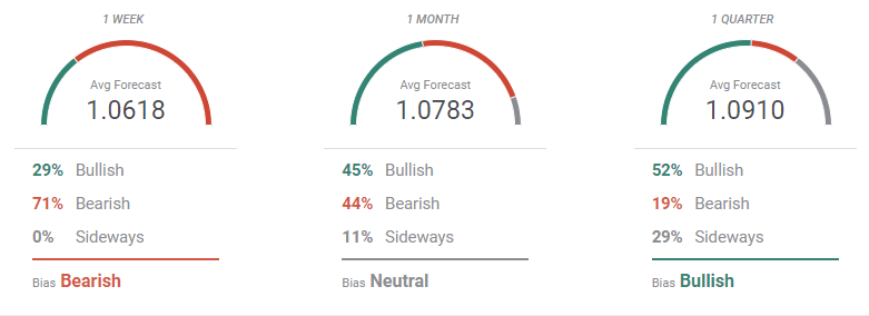 According to the FXStreet Forecast Poll, EUR/USD will remain under pressure in the near term, with 71% of the polled experts betting for lower levels in the weekly view. The pair is seen averaging 1.0618 in the upcoming days, with growing odds for a bullish correction afterwards, as in the monthly perspective, bulls and bears are pretty much equal, but the average target rises to 1.0783. Finally, a more bullish view is clear in the three-month outlook, with bulls up to 52% and bears down to 19%, resulting in an average target of 1.0910.