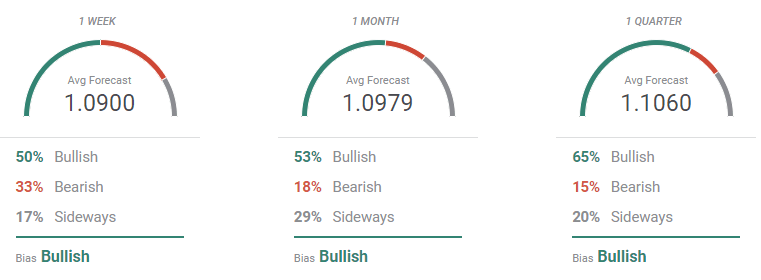 According to the FXStreet Forecast Poll, the EUR/USD pair may have a chance to recover. Market players do not expect a steeper decline but instead maintain their bullish stance. Buyers dominate the three time frames under study, increasing in time from 50% in the weekly view to 65% in the quarterly one. In contrast, bears shrink from 33% to 15%. On average, the pair is seen holding above 1.0900, picking up in term. In the quarterly view, EUR/USD is seen at 1.1060.