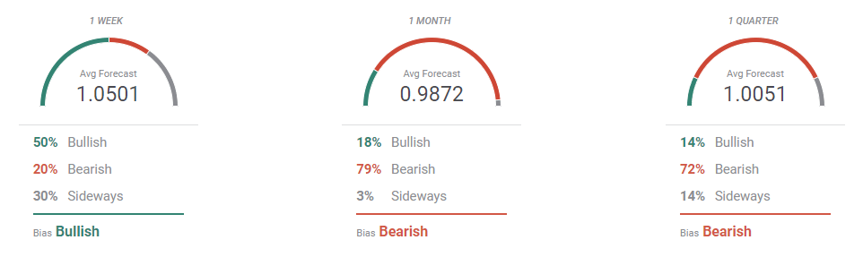 According to the FXStreet Forecast Poll, bulls are in control of the pair, at least in the near term. In the weekly perspective, most polled experts are bullish, with an average target of 1.0500. The bearish mid-term stance of banks still weighs on the monthly and quarterly perspectives, although fresh highs beyond 1.0500 have appeared, with the pair seen as high as 1.1000 in the three-month perspective. At the same time, the number of bets below parity has begun decreasing.