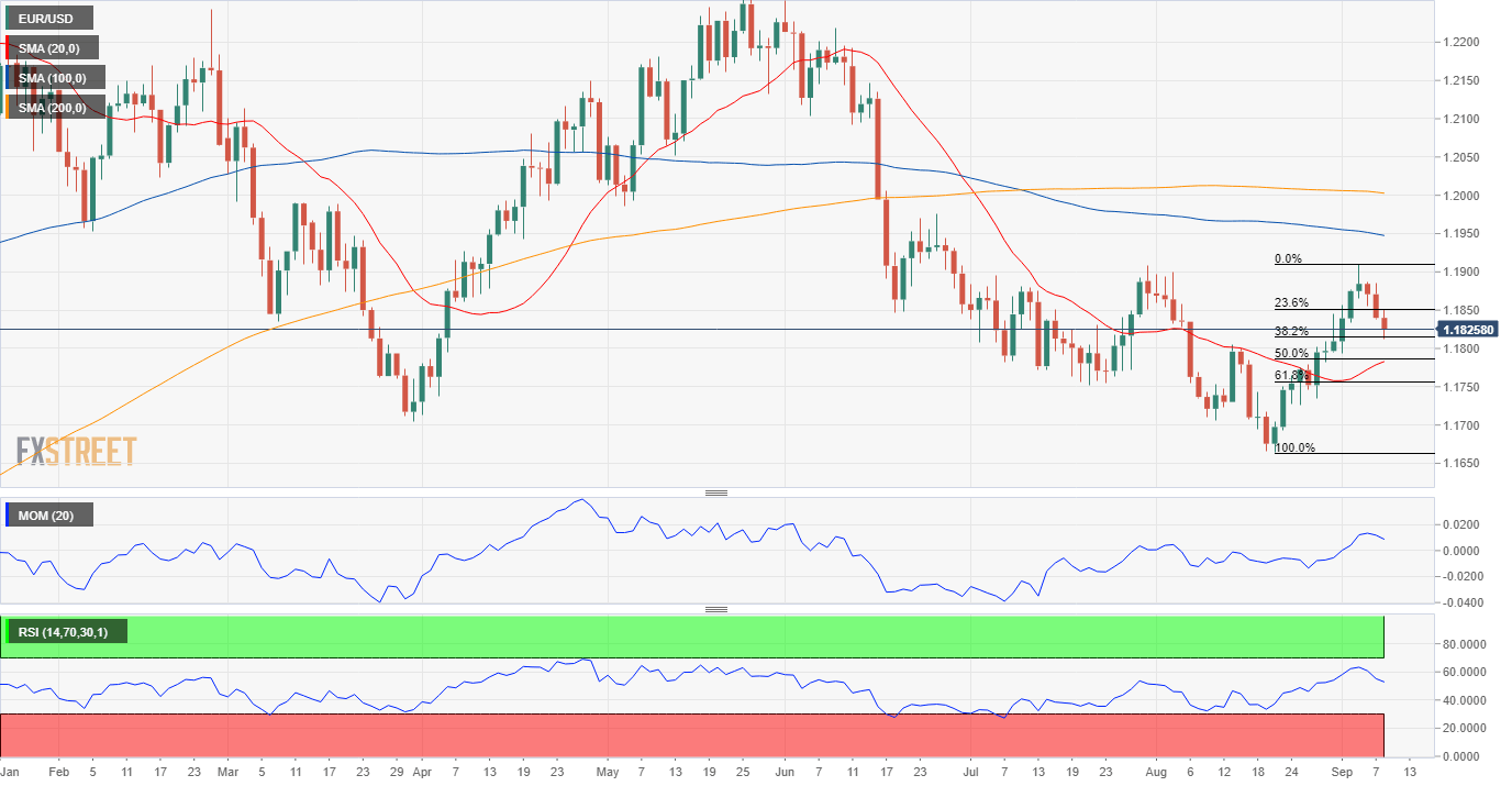 The EUR/USD pair is in a long-term downtrend, with the latest advance toward 1.1908 still seen as corrective. Now back to battle around the 1.1800 level, the ECB needs to boost the pair beyond the mentioned 1.1908 for the pair to have bullish chances in the mid-term. Unless Lagarde announces a firm intention and a clear path towards retrieving financial support, a 100 pips advance has not many chances.