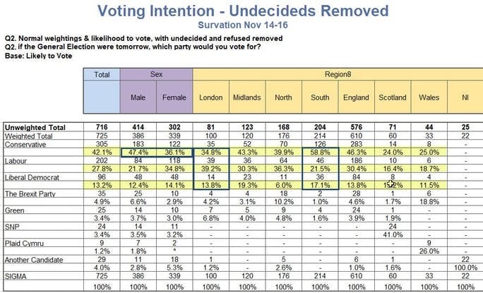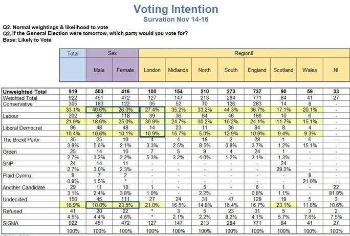 A whopping 47.7% of men are likely to vote for Boris Johnson vs only 36.1% of women.